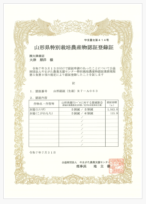 従来のお米から「特別栽培農産物認証」のお米へと栽培方法を変更。
